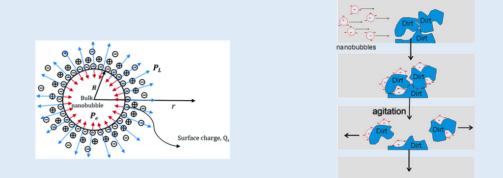 나노버블은 고유의 다양한 물리적, 화학적 물성 때문에 기체를 액체로 전달하는 능력이 매우 높고 액체 내에 오랫동안 유지 됩니다.